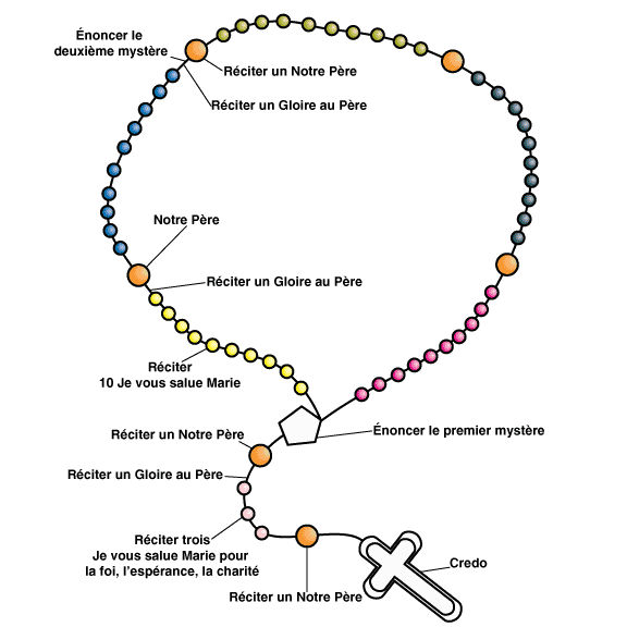 de mystères selon le jour (voir plus bas). Ensuite, commencez le chapelet