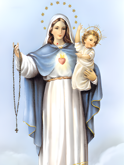 Jésus et Marie nous donnent le chapelet comme arme de la victoire et chaîne pour nous relier au Ciel. À nous de le saisir!