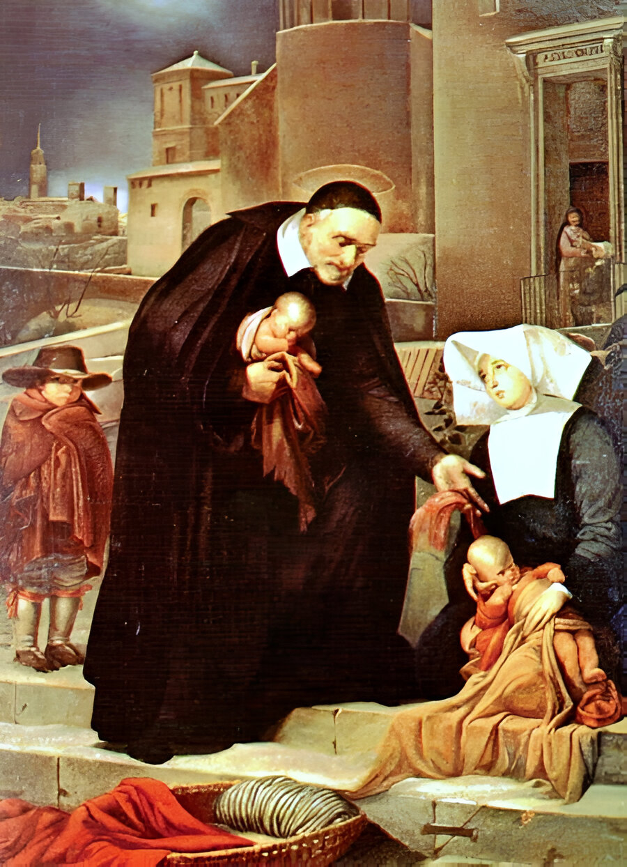 À l’une de ses religieuses qui était en prière devant le tabernacle et qui hésitait à quitter la chapelle pour aller prendre soin d’un malade, saint Vincent de Paul répondait: «S’il faut quitter l’oraison pour aller à ce malade, faites-le et ainsi vous quitterez Dieu à l’oraison et vous le trouverez chez ce malade.» C’est quitter Dieu pour Dieu.