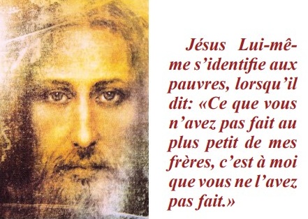 Là dans les pauvres, se manifeste la présence de Jésus, qui de riche s’est fait pauvre (cf. 2 Co 8, 9). Pour cela, en eux, dans leur faiblesse, il y a une «force salvatrice». Et si aux yeux du monde, ils ont peu de valeur, ce sont eux qui nous ouvrent le chemin du ciel, ils sont nos «passeports pour le paradis». Pour nous c’est un devoir évangélique de prendre soin d’eux, qui sont notre véritable richesse, et de le faire non seulement en donnant du pain, mais aussi en rompant avec eux le pain de la Parole, dont ils sont les destinataires les plus naturels. Aimer le pauvre signifie lutter contre toutes les pauvretés, spirituelles et matérielles.