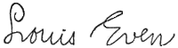 Louis Even fut l’homme qui changea le cours de notre vie. Nous lui rendons un hommage ému, et nous continuons son Œuvre. Que non seulement le Crédit Social, mais aussi la vie du grand Louis Even soit une lumière pour tous.