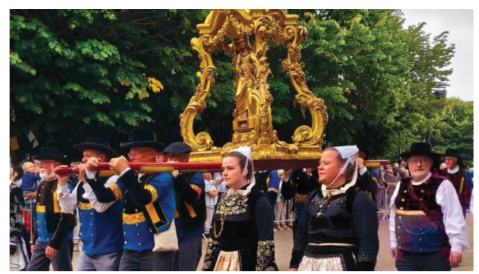 La procession du «Grand Pardon» avec la statue de sainte Anne arrive pour la messe pontificale