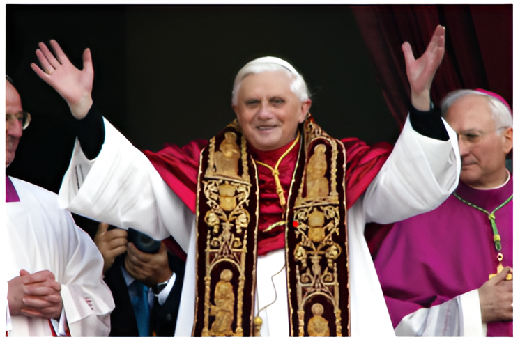 Le conclave pour élire le nouveau pape s'ouvrit le 19 Avril 2005 et dura moins de 24 heures, un des plus courts conclaves de l'histoire. À un géant de la foi comme Jean-Paul II, tous les cardinaux ne voyaient comme successeur possible qu'un autre géant de la foi – et collaborateur intime de Jean-Paul II pendant 23 ans – le cardinal Joseph Ratzinger. Et c'est son homélie lors des funérailles, prononcée 11 jours plus tôt, qui a achevé de les convaincre. Ainsi, à 78 ans, il devient le 265e pape, et se présente ainsi à la foule réunie place Saint-Pierre: