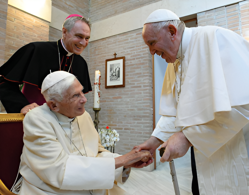 La dernière rencontre du Pape François avec Benoît XVI, le 27 Août 2022 « Nos pensées vont spontanément à notre très cher Pape émérite Benoît XVI, qui nous a quittés ce matin. Nous nous souvenons avec émotion de sa personne si noble, si gentille. Et nous ressentons beaucoup de gratitude dans nos cœurs: gratitude envers Dieu pour l'avoir donné à l'Église et au monde; gratitude envers lui, pour tout le bien qu'il a accompli, et surtout pour son témoignage de foi et de prière, particulièrement dans les dernières années de sa vie retiré du monde. Dieu seul connaît la valeur et la force de son intercession, de ses sacrifices offerts pour le bien de l'Église. »
