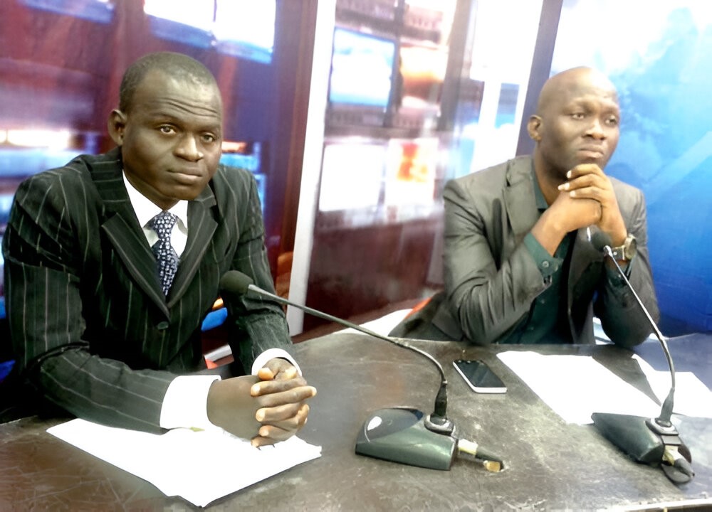 | Jean Lare et Gabriel Koubang expliquant le Crédit Social sur les ondes de la télévision togolaise |