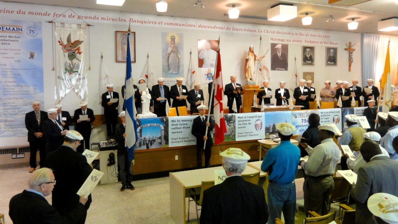 « Les Pèlerins de saint Michel sont persuadés qu’en embrassant le programme de Marie, chaque acte qu’ils posent, chaque Ave qu’ils adressent à la Reine du monde, chaque sacrifice qu’ils offrent, contribuent non seulement à leur sanctification personnelle, mais aussi à l’avènement d’un ordre social plus sain, plus humain, plus chrétien, comme le Crédit Social. Dans un tel programme reçu de Marie, tout compte et rien n’est perdu. »