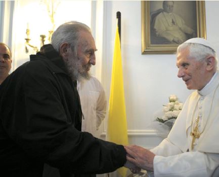 Le 26 mars, le Saint-Père a quitté le Mexique pour Santiago de Cuba, où il a été reçu à l’aéroport par le président Raul Castro (qui a succédé en 2008 à son frère Fidel). Benoît XVI a déclaré dans son discours: «De nombreuses parties du monde vivent aujourd’hui un moment de difficulté économique particulière, que de nombreuses personnes s’accordent à situer dans une profonde crise de type spirituel et moral, qui a laissé l’homme vide de valeurs et sans protection devant l’ambition et l’égoïsme de certains pouvoirs qui ne prennent pas en compte le bien authentique des personnes et des familles. On ne peut pas continuer à suivre plus longtemps la même direction culturelle et morale qui a causé la situation douloureuse que tant de personnes subissent. Au contraire, le progrès véritable nécessite une éthique qui place en son centre la personne humaine et qui prend en compte ses exigences les plus authentiques, de manière spéciale, sa dimension spirituelle et religieuse. Pour cela, dans le cœur et dans la pensée de beaucoup, s’ouvre toujours plus la certitude que la régénération des sociétés et du monde demande des hommes droits, de fermes convictions, des valeurs de fond morales et élevées qui ne soient pas manipulables par des intérêts étroits, et qui répondent à la nature immuable et transcendante de l’être humain.