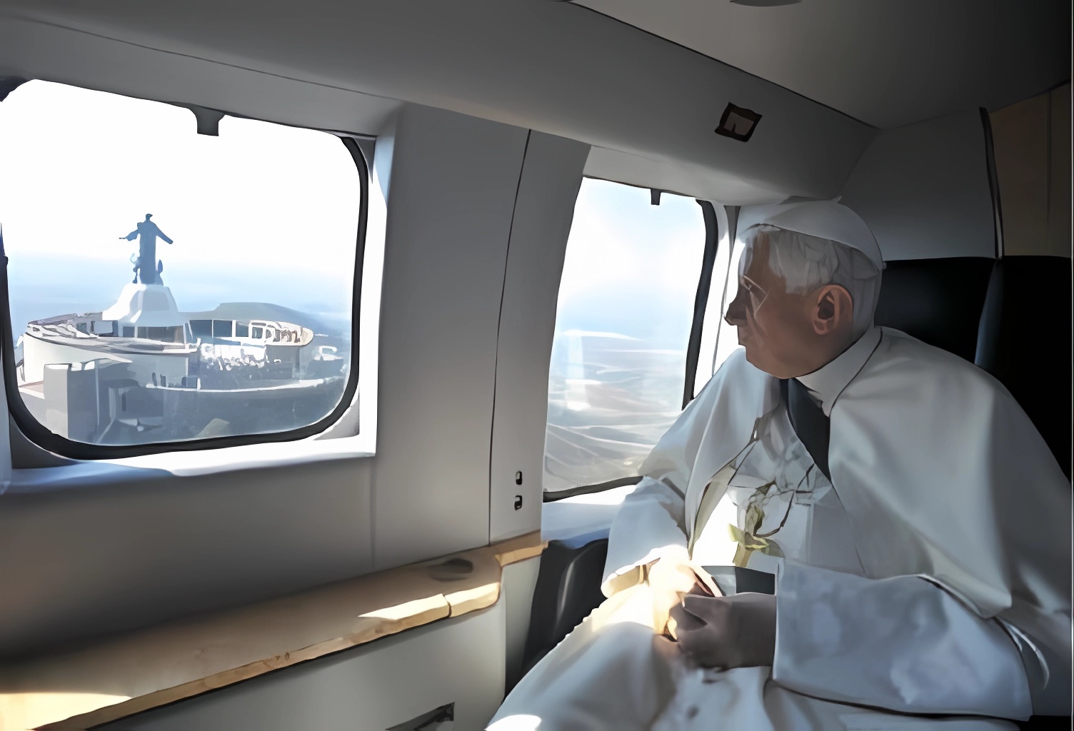 Quelque 640.000 Mexicains enthousiastes sont venus rencontrer Benoît XVI pour le sommet de sa visite pastorale: la messe au pied du Christ Roi du Cubilete près de Leon, au centre géographique du pays, ce dimanche 25 mars. Avant de rejoindre le «parc du Bicentenaire» de l’indépendance mexicaine pour la célébration de la messe, le Pape avait survolé en hélicoptère la statue géante du Christ Roi (voir photo ci-haut).