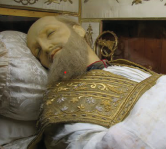 Ancienne statue de cire de saint François de Sales au couvent des Soeurs de la Visitation à Annecy