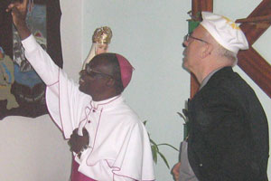 Nous avons rencontré le Père Eloi avec un autre assistant. Ils ont accepté avec empressement de recevoir un conteneur de circulaires. Ils vont distribuer cela à travers tout le Togo. J’ai appelé l’Archevêque de retour à Rougemont pour le remercier de son accueil chaleureux et pour lui annoncer que nous étions prêts à envoyer le conteneur. Il a dit: «Merci beaucoup! Merci beaucoup!» Nous avons au Togo, Gabriel Koubang, qui est aussi très intéressé à venir au Congrès et qui est très ardent pour notre mouvement.