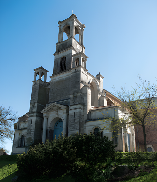 L’église paroissiale de Montfort-sur-Meu, d’abord dédiée à saint Jean-Baptiste, puis à saint Louis-Marie Grignion de Montfort